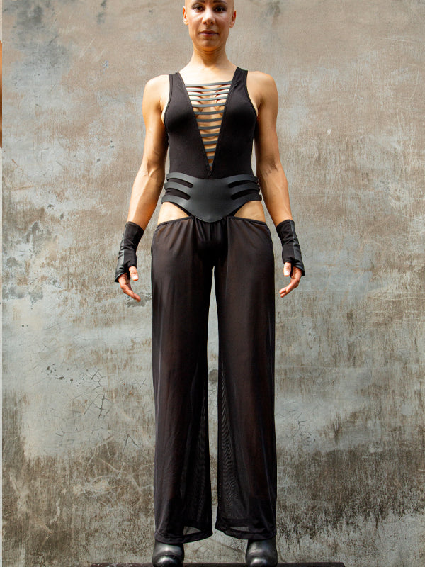 Die Hydra Pants sind der perfekte Begleiter für schwüle Sommernächte, wilde Festivals und ausgelassene Tanzflächen. Aus weichem, transparentem Mesh und auffälligen Kunstlederakzenten gefertigt, schaffen sie die perfekte Balance zwischen verführerisch und kraftvoll.