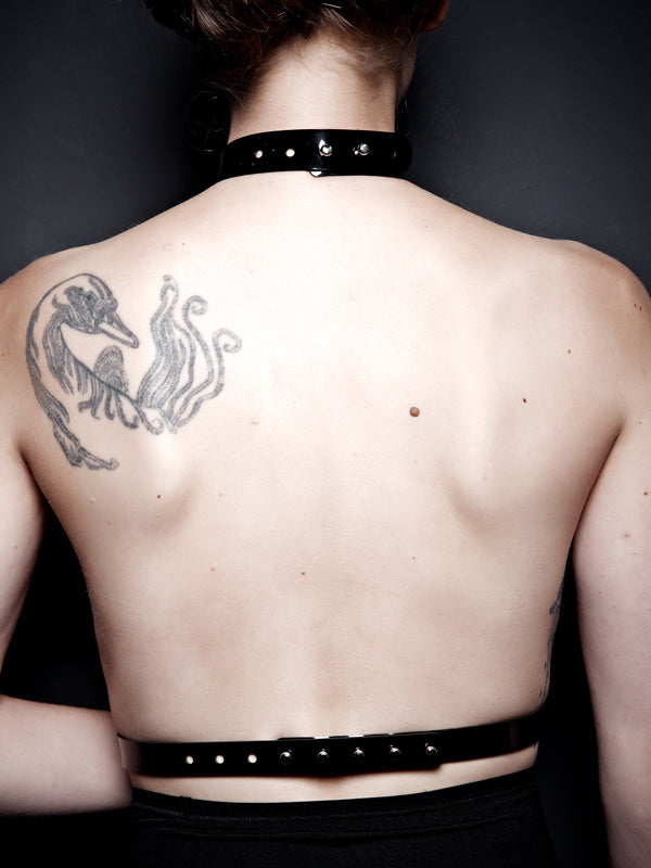 Gefertigt aus hochwertigem Kunstleder, das sich so echt anfühlt wie dein Feuer, kanalisiert das Spirit Harness Energie, Kraft und Schutz. Schlank, strukturiert und unverschämt kühn umhüllt es deinen Körper wie eine zweite Haut – bereit für Rituale, Rebellion oder was auch immer die Nacht ruft.