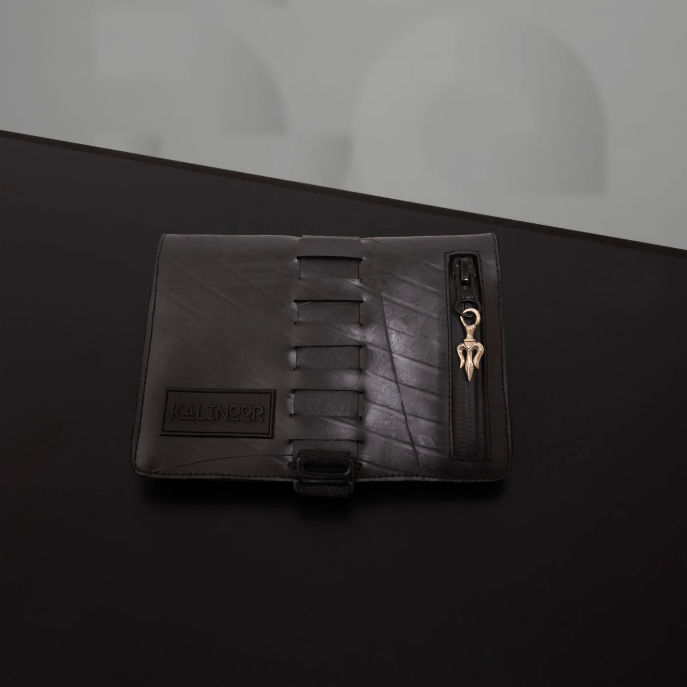 Der Tucana Tabakbeutel besteht außen aus 100 % recyceltem Gummi und innen aus strapazierfähigem Denim und ist ein auffälliges und umweltbewusstes Accessoire für den Alltag. Wasserdicht und robust, verfügt er über einen sicheren Reißverschluss und ein filigranes Trischel-Ornament aus weißem Messing für einen Hauch mystischen Flairs.