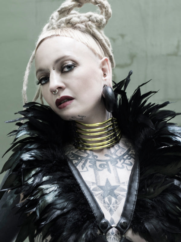 Crafted from lightweight rubber tubes and finished with silver-colored brass rings, this statement piece brings a futuristic edge to any outfit. It’s flexible, comfortable, and made to stand out.